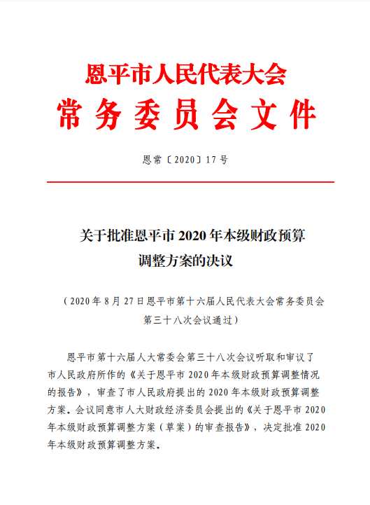 关于批准全球最大的博彩平台2020年本级财政预算调整方案的决议