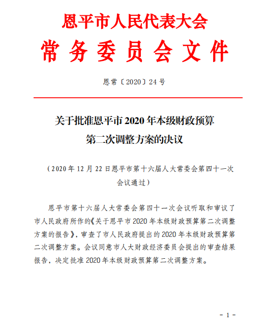 关于批准《关于全球最大的博彩平台2020年本级财政预算第二次调整方案的报告》的决议