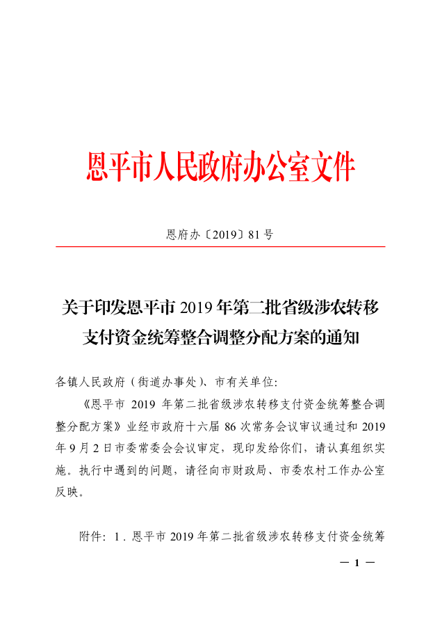 关于印发全球最大的博彩平台2019年第二批省级涉农转移支付资金统筹整合调整分配方案的通知