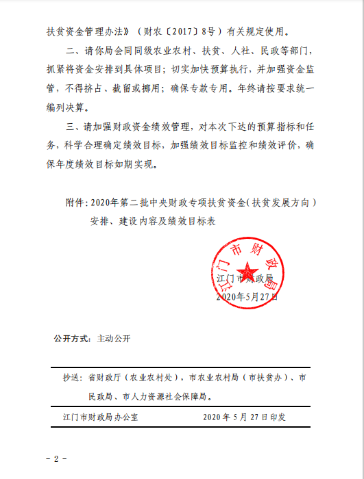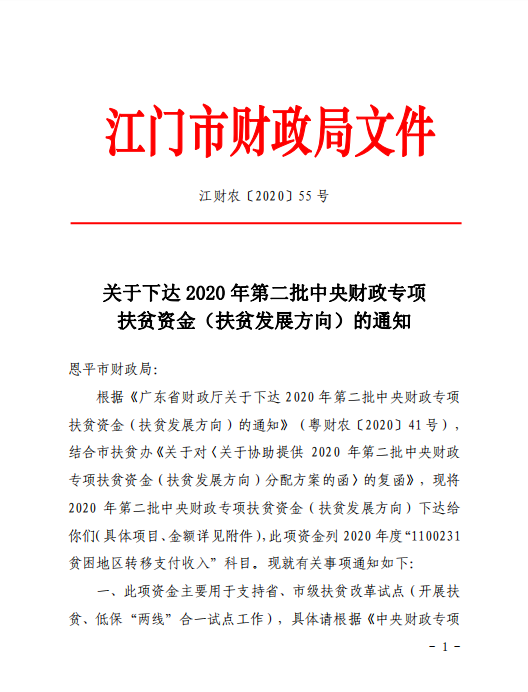 关于下达2020年第二批中央财政专项扶贫资金(扶贫发展方向)的通知