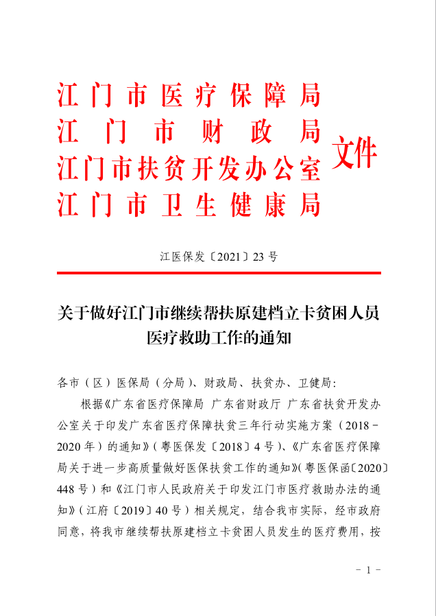关于做好江门市继续帮扶原建档立卡贫困人员医疗救助工作的通知
