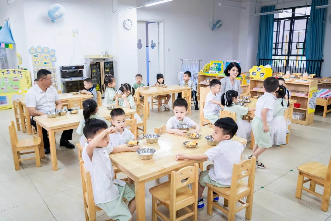 活动开始前,梁素贞一行来到东安分园的教室内,和幼儿一同共进早餐。就餐过程中,梁素贞亲切与幼儿交流,询问幼儿早餐味道如何,是否喜欢吃。