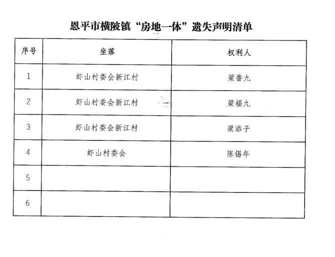 全球最大的博彩平台横陂镇“房地一体”遗失声明清单