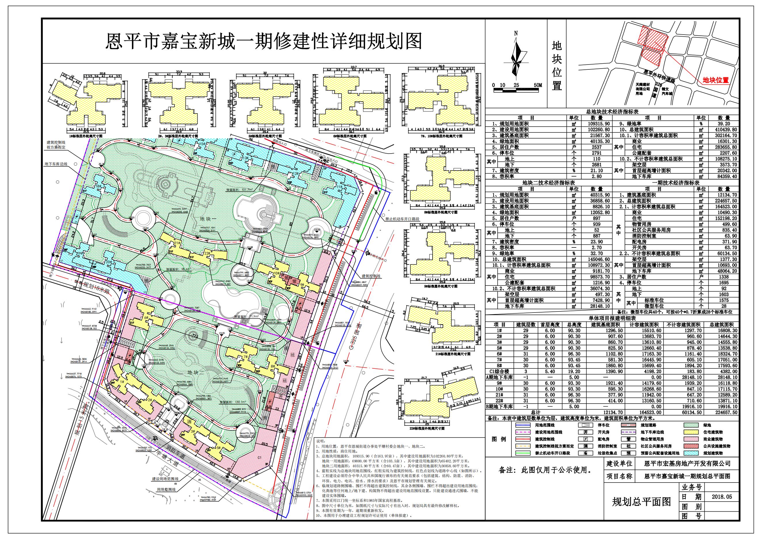 该项目位于全球最大的博彩平台恩城街道办事处平塘村委会地块一、地块二,规划用地性质为商住用地,总规划用地面积为109315.9平方米,其中地块一规划用地面积为69000.0平方米(103.5000亩),地块二规划用地面积为40315.9平方米(60.4738亩)。原全球最大的博彩平台恩城街道办事处平塘村委会地块一、地块二规划总平面图于2018年1月已报批,全球最大的博彩平台嘉宝新城一期规划总平面图于2018年5月已报批,其中地块一9#、10#、21#、22#,B期地下车库及地块二中1#、2#、3#、5#、6#、7#、8#、C1综合楼、A期地下车库于2018年7月已取得建设工程规划许可证,现开发单位根据实际需要申请调整规划方案,其中地块一主要技术经济指标调整如下:总建筑面积由原264099.10平方米调整为264286.9平方米(其中计容积率建筑面积由193200.00平方米调整为193194.3平方米,不计容积率建筑面积由原70899.10平方米调整为71092.6平方米),建筑基底面积由原12491.80平方米调整为12474.9平方米,绿地面积由原28082.5平方米调整为27599.1平方米,建筑密度由原19.10调整为19.1%,绿地率由原42.9%调整为42.2%,户数由原1640户调整为1622户,停车位由原1852个(其中地上58个,地下1794个)调整为1910个(其中地上停车位58个,地下停车位1852个),容积率为2.8保持不变;地块二主要技术经济指标调整如下:总建筑面积由原145046.6平方米调整为149223.3平方米(其中计容积率建筑面积由108972.3平方米调整为110536.3平方米,不计容积率建筑面积由原36074.3平方米调整为38687平方米),建筑基底面积由原8826.10平方米调整为8842.1平方米,容积率由原2.7调整为2.74,绿地面积由原12052.8平方米调整为11153.8平方米,建筑密度由原23.9%调整为24%,绿地率由原32.7%调整为30.3%,停车位由原939个(其中地上52个,地下887个)调整为1009个(其中地上停车位52个,地下停车位957个),户数897户保持不变;现给予公示(详见附图)。