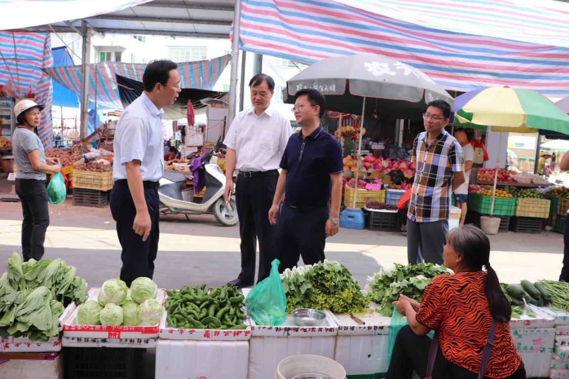 座谈会结束后,刘兵一行继续来到圩镇农贸市场、下绵湖村委会实地调研指导工作。在圩镇农贸市场,了解了市场假日期间的日常运作情况,提出在确保正常供应食品的同时要保证食品质量的安全。在下绵湖村委会,刘兵一行了解了村干部的值班值守情况、村委会辖区节日喜庆活动情况,对坚守岗位的村干部表示了问候,并提出,要认真落实假期值班制度,及时了解辖区内各村小组开展活动的情况,并要做好现场安保维稳工作,对森林防火及消防安全等工作也要紧绷安全这根弦,排查隐患,防微杜渐,切实保证群众的生命财产安全。