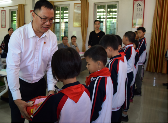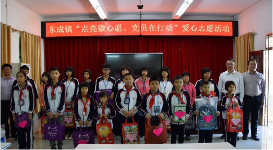 党课前,谢超武一行还来到东成中心小学,给40位有困难的学生逐一送上“圆梦”礼物,与每位学生亲切交谈,鼓励他们自强不息,在困境中磨砺意志,争取早日成才。