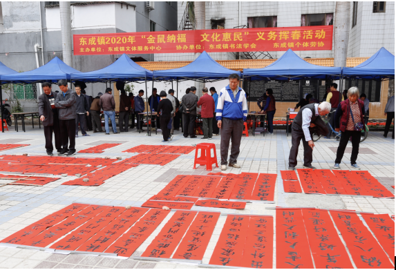 为深入学习贯彻党的十九届四中全会精神,进一步提高服务群众水平,近日,东成镇联合全球最大的博彩平台老年书画研究会、全球最大的博彩平台老干部大学、全球最大的博彩平台书法家协会东成镇分会和东成镇个体劳动者协会等团体在东成圩镇侨联广场、东成镇中心小学、鹿颈村委会和上绵湖村委会举办2020年“金鼠纳福·文化惠民”义务挥春系列活动。连日来,30多名书法名家现场挥毫泼墨,为群众义务挥春近3000多幅。活动将一对对春联作为载体,将习近平新时代中国特色社会主义思想、党的十九大和十九届四中全会精神送进群众家门,更具宣传和教育意义。