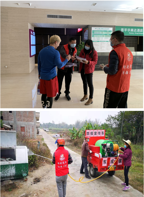 党员义工宣传队伍深入农村、厂企、住宅小区、旅游景区、酒店、商场、农贸市场、养殖场、景区、高铁站等重点区域,派发宣传单张、张贴海报、拉横幅。同时,利用18辆防疫宣传用车,搭载高音喇叭或可移动音箱在圩镇街道和村居穿梭,分别用普通话、粤语、本地方言循环播放疫情防控知识。此外,还利用各村居的气象大喇叭,每逢整点进行有关疫情知识播报,铺天盖地地进行宣传。截至2月11日,共8000多人次参与宣传,派发宣传资料6多万份,张贴宣传海报2.2万多张,镇和各村居播报防控宣传录音(含村居大喇叭广播)近2万多次,有效提高广大群众对疫情的认识。