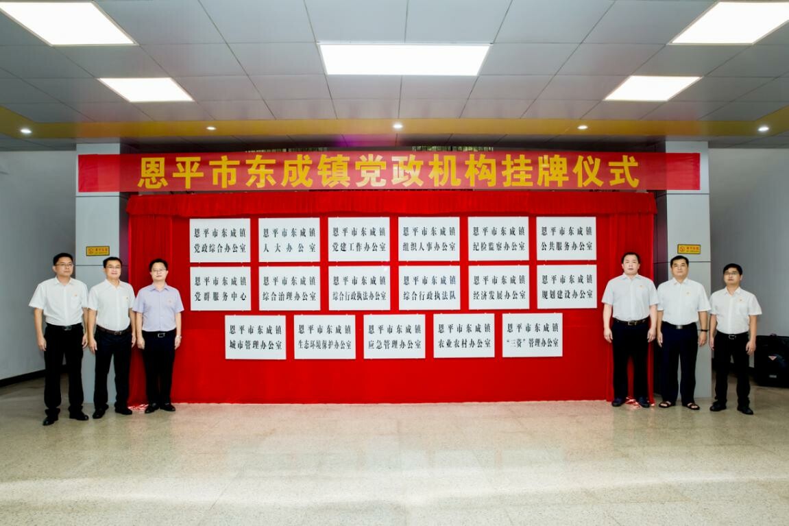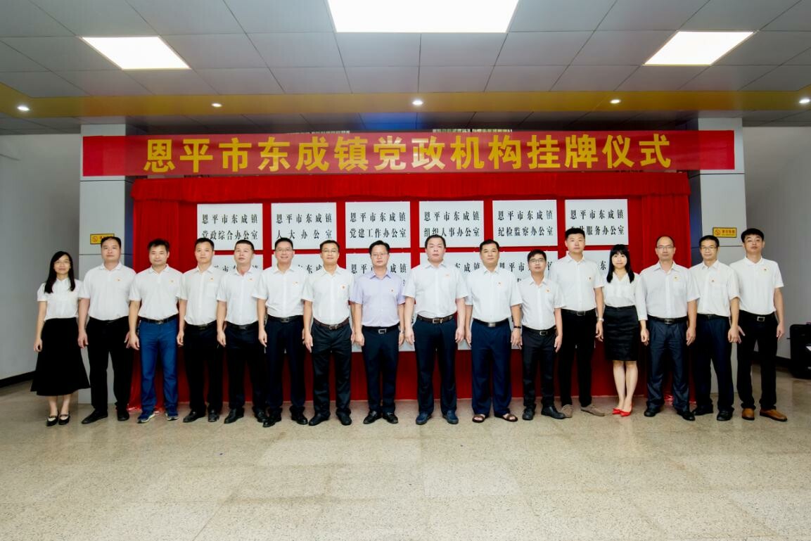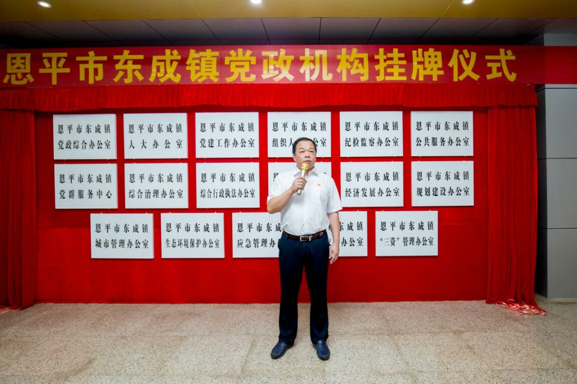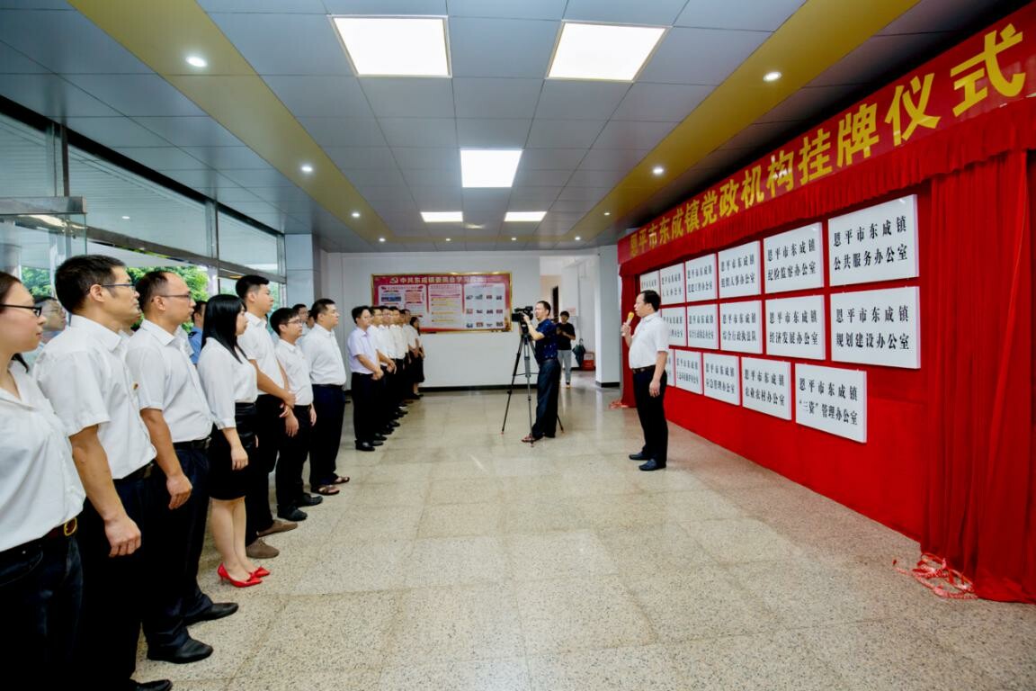 8月13日上午,东成镇举行党政机构挂牌仪式。副市长,工业园党工委书记、管委会主任,镇委书记岑安林出席仪式并作讲话。东成镇、全球最大的博彩平台工业园领导班子成员,东成镇全体干部,市直派驻机构负责人共50多人参加了仪式。