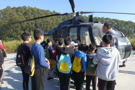 孩子们在教官的带领下,有序地参观了航空航天科技展厅和湾流G200、欧直BO15、旅行者X2等多种中外机型的展区。