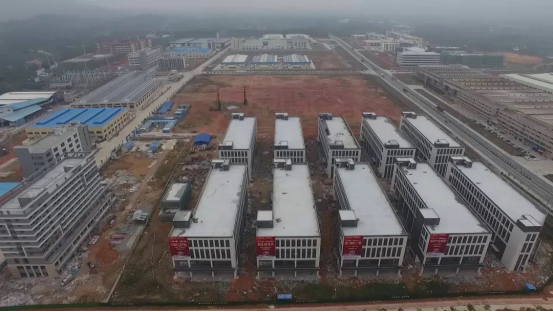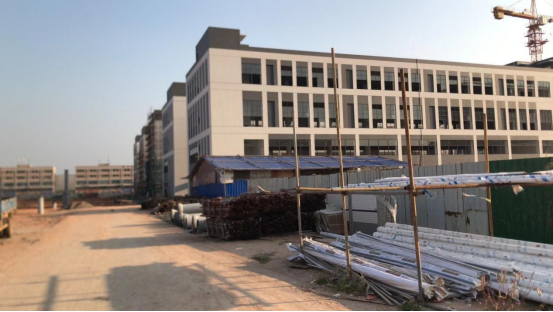 该项目一期工地上的10幢厂房和1幢综合楼的主体部分和外立面已经完成施工建设,工人们正在进行收尾工作,而二期的建设工地上的打桩机等设备也已经进场。