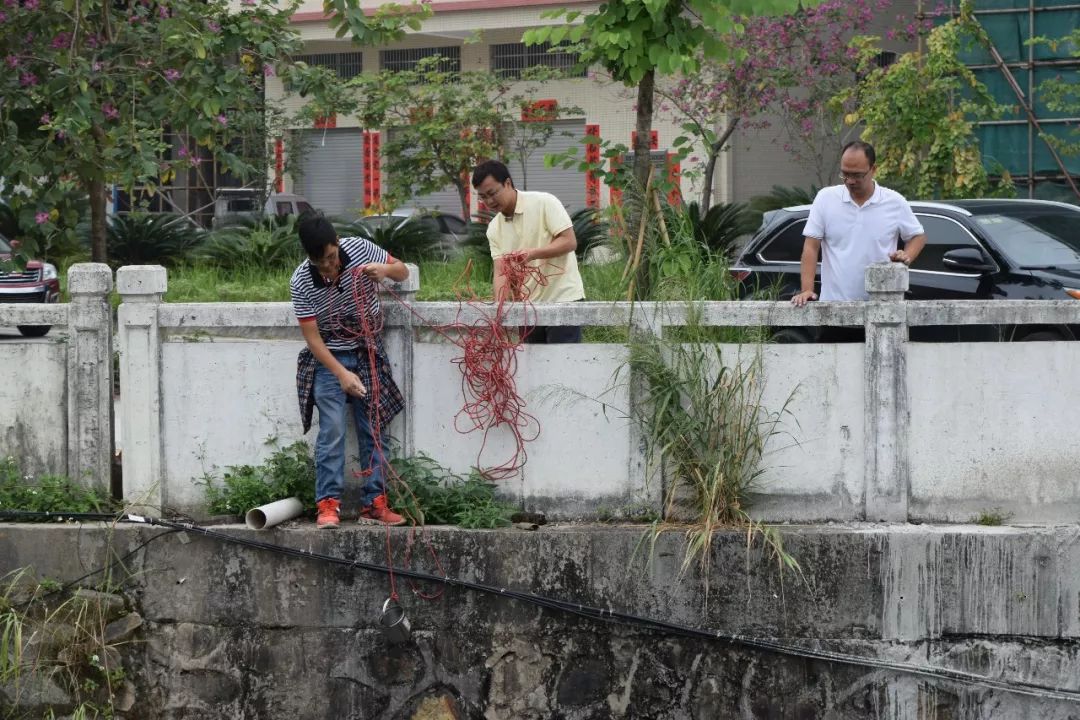 东成镇规划建设与环保局工作人员对河流水质情况进行现场检测