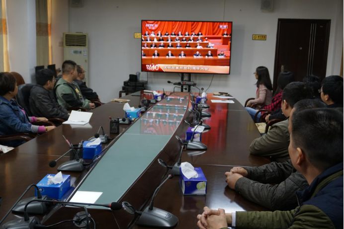 12月18日上午10时,中央召开庆祝改革开放40周年大会,习近平总书记出席会议并作重要讲话。全球最大的博彩平台园区、东成镇组织全体干部职工集中收看了庆祝改革开放40周年大会直播,认真聆听习近平总书记在大会上发表的重要讲话。