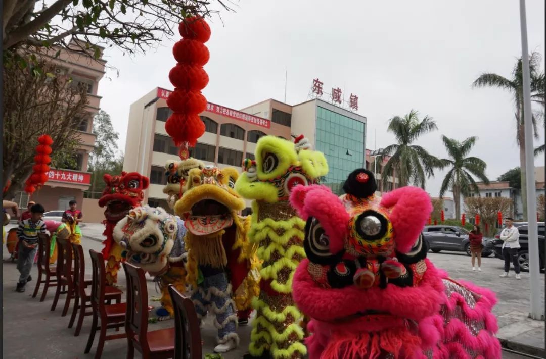 醒狮贺新春,锣鼓声响起。六头醒狮闹新春,为节日的东成增添了浓浓的欢乐气氛,呈现出一片欢乐祥和的景象。