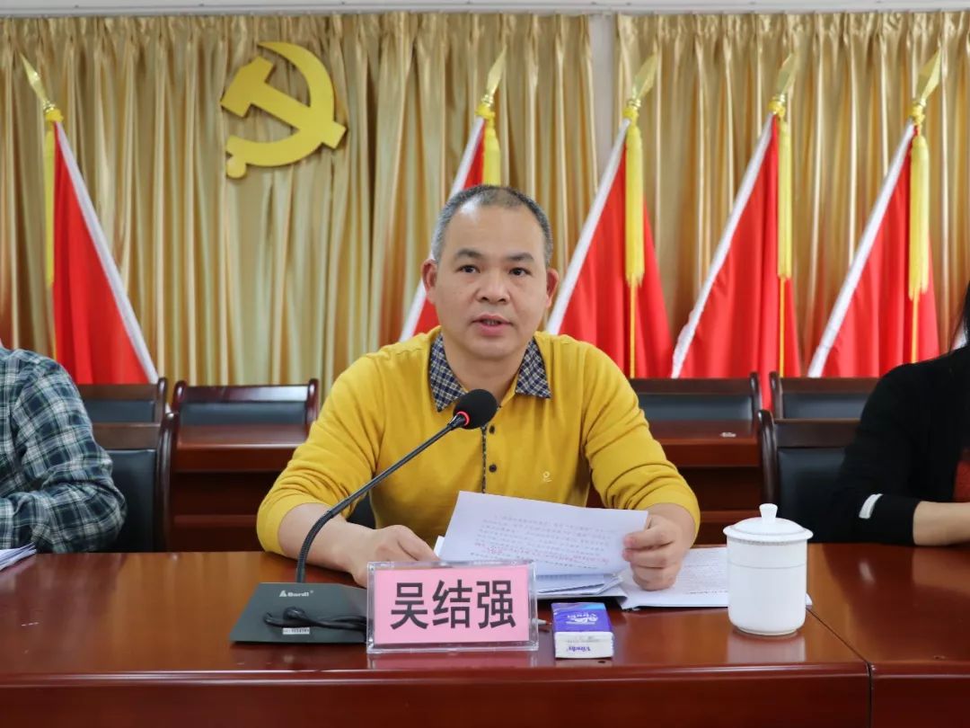 吴结强结合东成镇2019年党建工作计划,具体部署了全年党建工作,要求各级党组织务必高度重视,抓好落实,强调要深入贯彻落实《广东省加强党的基层组织建设三年行动计划(2018-2020年)》文件精神,以“组织力提升”为主题,推动东成、园区基层党组织建设全面进步、全面过硬。