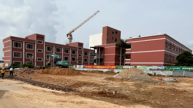 记者在施工现场见到,基地内的教学楼、教师宿舍楼等主体工程已基本建设完成,工人们正在进行室内装修等工作。同时,户外的足球场、篮球场等运动场地也在紧锣密鼓地建设中,工人们各司其职,相互配合着进行各项施工作业,现场呈现出一派热火朝天的繁忙景象。