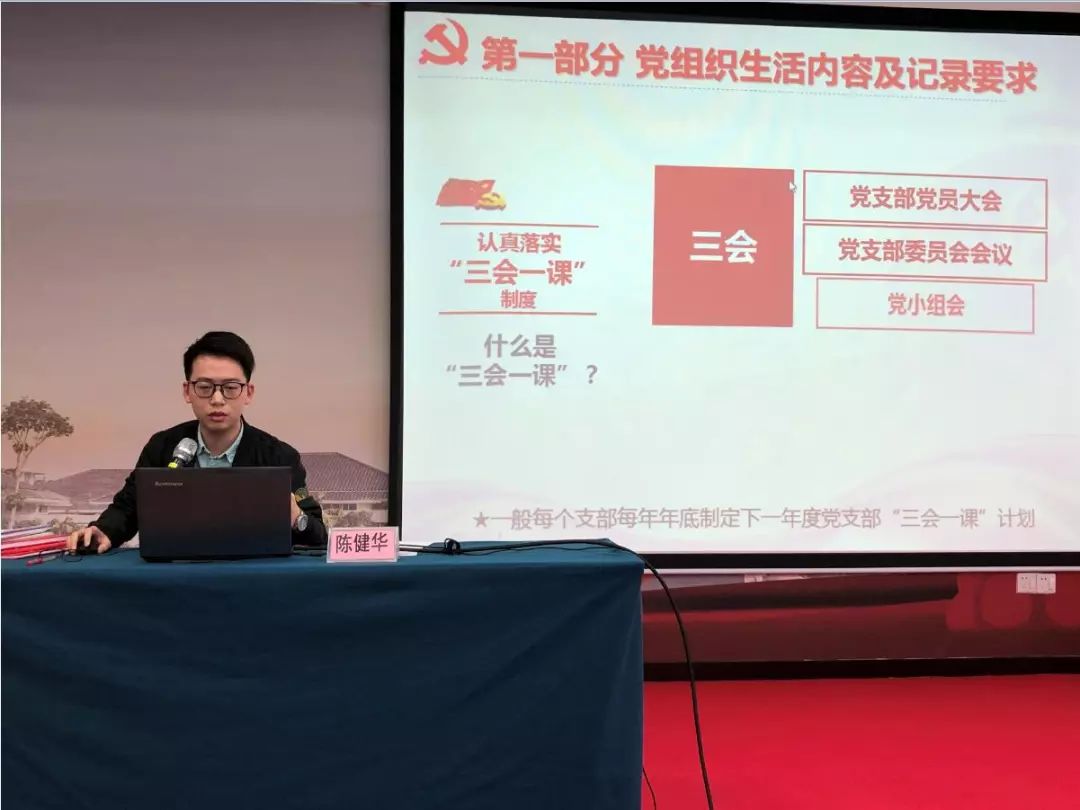 陈健华同志围绕《中国共产党支部工作条例(试行)》规定,针对党组织生活的规范化工作新要求,结合近期新启用的《党支部工作手册》,详细讲解了“三会一课”、组织生活会、民主评议党员、谈心谈话、主题党日等会议记录填写要求及技巧。