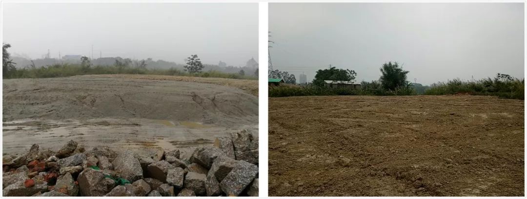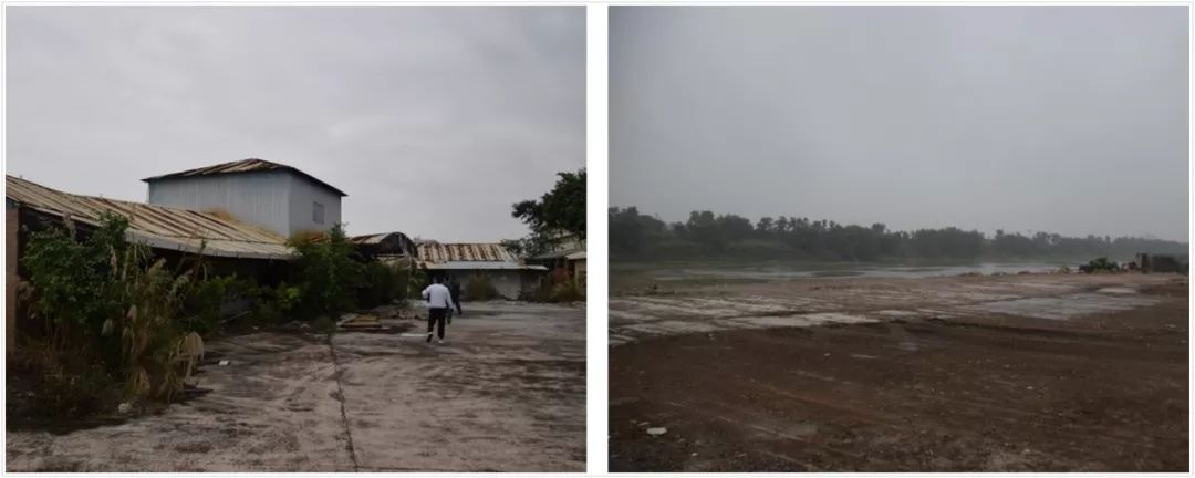 锦江河锦兴纺织厂河段违规占用河道行洪区堆放砂石粉整治前后