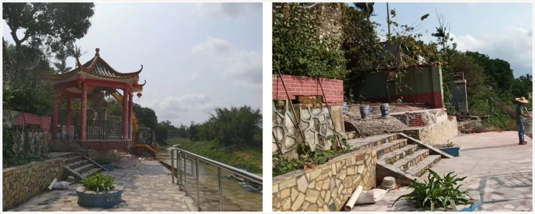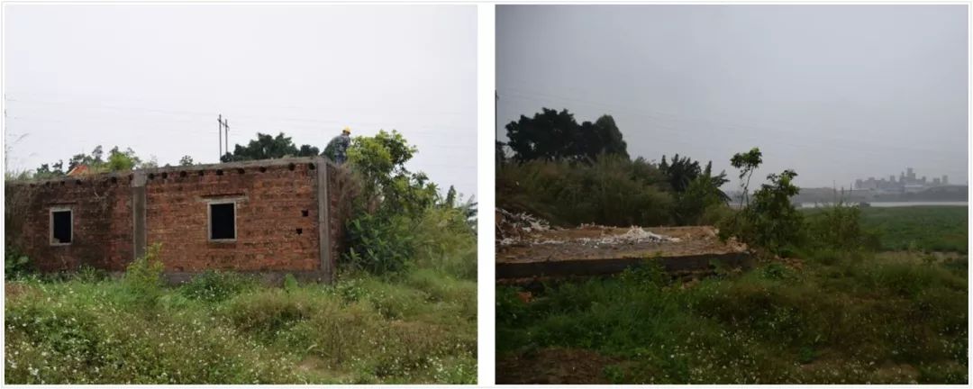 东成镇绵湖桥下游右岸边违建房子整治前后