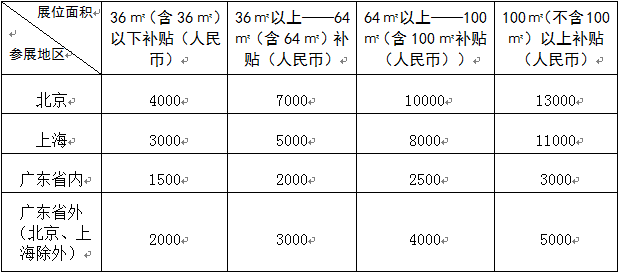 凡参加补助范围内展会的企业,根据企业参展地区进行补助。
