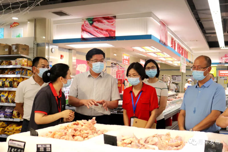在华润万家超市,黎沛荣详细了解扫码测温、车辆分流、冷链食品储存和追溯管理、从业人员核酸检测、员工个人防护以及卫生消杀等工作情况,认真查看各项证明材料。他指出,超市是人员流动最为密集的地方,是疫情防控重点场所之一,要确保每一位顾客进入超市之前都要扫码测温,守住“一米线”,并加强车辆分流管理,合理设置停车位,避免人流过于密集。要严把冷链食品源头,做到来源可查、精准溯源,并严格落实消毒、核酸检测等防疫要求。
