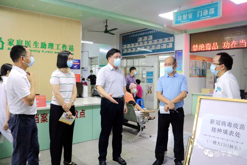 在平石社区卫生服务中心,黎沛荣实地查看了新冠病毒疫苗接种登记区、接种区、留观区等接种环境,详细了解接种流程、工作人员配备和接种进度等情况。他强调,有序开展新冠病毒疫苗接种工作是当前常态化疫情防控工作的重要内容,事关人民群众生命安全和身体健康。要进一步规范接种流程,完善工作细节,接种期间利用宣传展板、公告栏等显著位置,每小时通报一次疫苗库存量,让群众及时知悉接种情况,有效缓解等候人数过多、等候时间过长等难题。要重新规划接种点,扩大接种区和留观区面积,为群众提供舒适的接种环境,确保疫苗接种工作顺利推进。