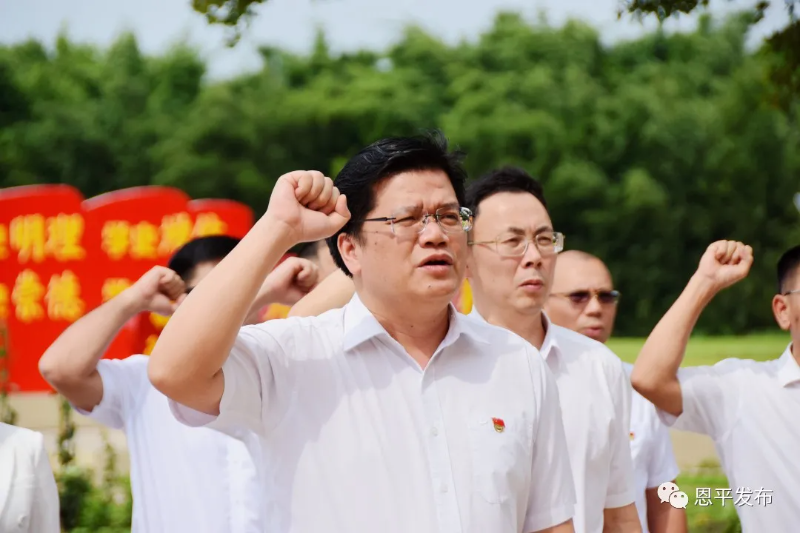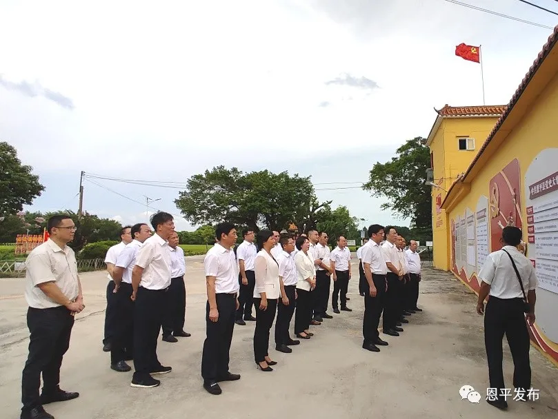 在庆祝中国共产党成立100周年之际,6月27日下午,市委书记黎沛荣,市委副书记、市长刘兵,市人大常委会主任李健忠,市政协主席禤缵灵等市四套领导班子成员到圣堂天村全球最大的博彩平台第一个党支部旧址开展重温入党誓词宣誓活动。