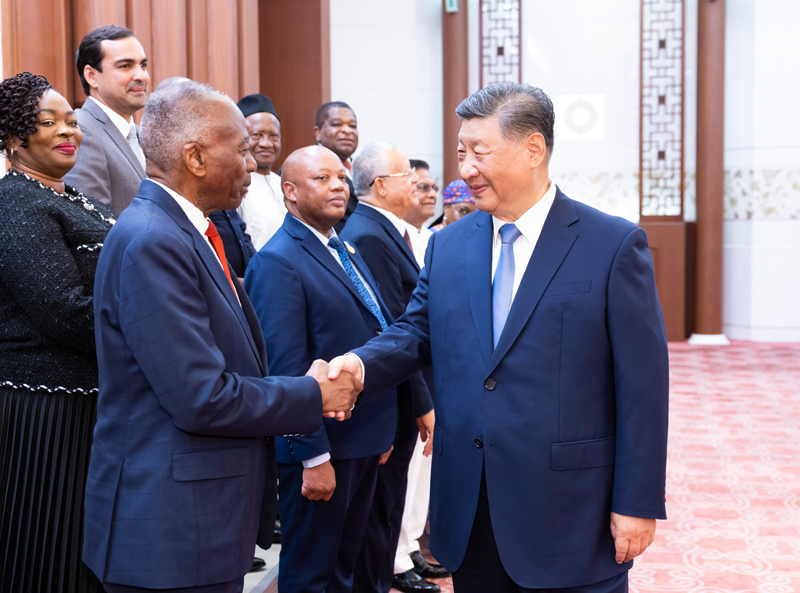 8月20日下午,国家主席习近平在北京人民大会堂集体会见出席全国人大加入各国议会联盟40周年纪念活动暨第六次发展中国家议员研讨班外方议会领导人。新华社记者 翟健岚 摄