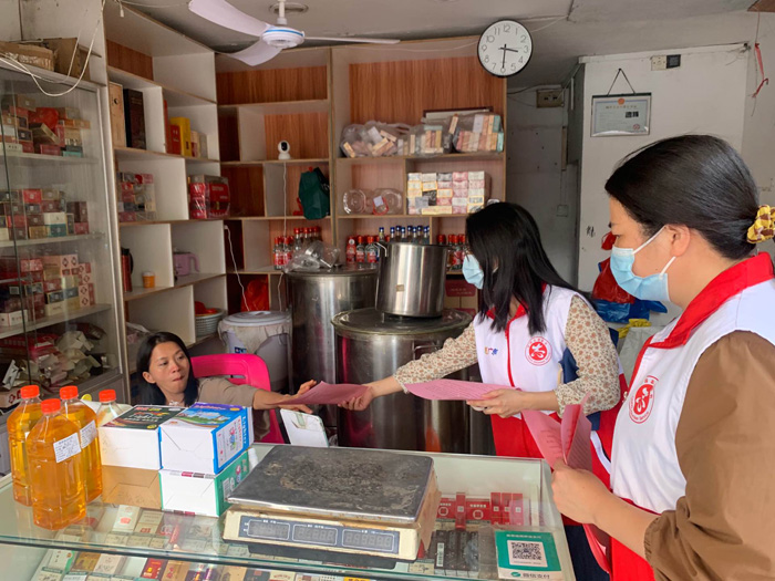 活动中,志愿者进入店铺,热情向经营户发放诚信宣传倡议书,向他们宣传、讲解诚信的重要性以及失信到来的严重后果,经营户们纷纷表示坚持诚信做人、诚信经营,坚决不销售假冒伪劣商品,共同营造诚实、自律、守信、互信的社会信任环境。