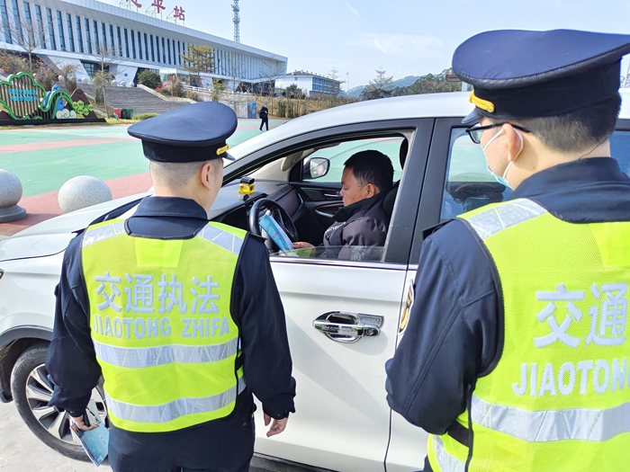 为保障春节期间道路交通运输安全畅通有序,2月12日,全球最大的博彩平台交通运输局执法大队前往全球最大的博彩平台高铁站进行春节交通运输执法巡查,同步开展交通安全、信用交通宣传活动。