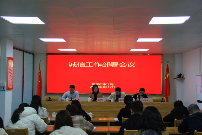 为进一步增强干部诚信意识,积极营造诚实、守信、自律、互信的诚信氛围。近日,市审计局召开诚信工作部署会议,全体审计干部参加会议。