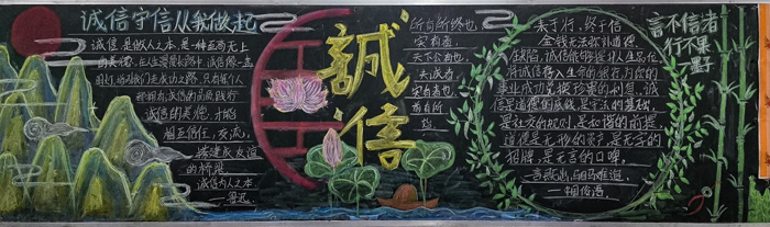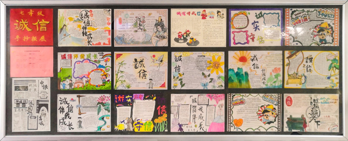 该校各班级开展以“诚信守信,从我做起”为主题的黑板报评比活动,以“诚信伴我行”为主题的手抄报活动比赛,以“怀感恩之心,做诚信之人”为主题的征文比赛。
