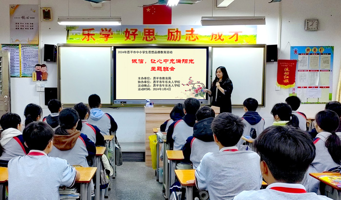 该校开展了以“弘扬诚信美德,争做诚信少年”为主题的知识讲座。讲座中,政教副主任冯明元围绕“诚实守信”的道德精神内涵,通过唱一首歌《诚信歌》、看一段视频、讲一则诚信故事、诵一段有关诚信的经典语句等方式有序进行。活动开始,欢快动听的歌曲奠定了本次讲座的情感基调。紧接着,通过学生讲故事,分享身边事例,让大家感受到了榜样的力量,纷纷阐述着自己对诚信的理解。最后,大家一起宣誓:诚信为人,诚信做事,诚信于社会,自觉自律,自尊自强,做一名诚实守信的文明学生。