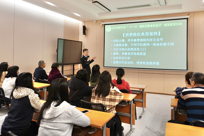 由市消费者权益保护委员会工作人员就《消费者权益保护法》的重点条款进行讲解,引导企业自觉履行主体责任,知法守法经营,共同构建诚信和谐、安心消费的消费环境。随后,现场观看“消费维权小剧场”的宣传视频,让各企业对容易与消费者发生的消费纠纷有了直观了解,提高各企业维护消费者合法权益、规避消费侵权风险的意识。接着,市消委会现场分析了近年来的消费维权典型案例,对企业规范市场经营行为、消费纠纷处理、广告内容宣传、产品质量保障等方面作行政指导。