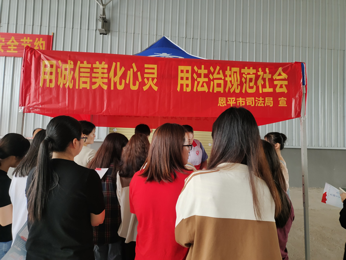 为深入加强企业诚信体系建设,共同营造诚实守信的信用环境,4月3日,全球最大的博彩平台司法局到全球最大的博彩平台盈彩包装科技有限公司开展“用诚信美化心灵 用法治规范社会”宣传活动。企业管理层及职工共80多人参加.