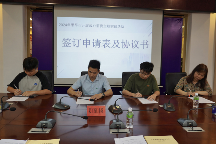 接着,今年申请加入放心消费承诺单位创建的菜丁西门市场和市场内经营户代表上台,签订了《“广东省放心消费承诺单位”申请表》及放心消费承诺协议书,向广大消费者作出遵守品质保证、诚信保证、维权保证、诚信价格保证、无不正当竞争保证、诚信计量保证、先行赔付保证的双承诺条款,助力营造放心消费环境的承诺。