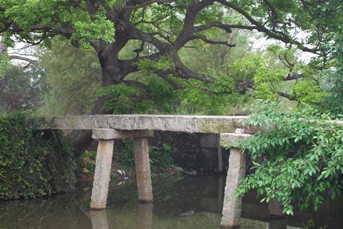 平塘村三驳桥兴建于中华民国时期,东北至西南走向,桥全长12.79米,每驳长4.26米,桥面宽1.1米,高3米,共三驳,三驳桥跨越阳桥水,由花岗岩组成,每驳有三条花岗岩并排构成,石板长4.26米,宽0.35米,厚0.32米。桥架共4个,基本呈等距离分布,中间两个,两端各一个。桥架以两根石柱略呈八字形支撑上部石横梁承托桥面石条。石柱与石横梁之间以榫卯结构套合。三驳桥是平塘村和平三村的连接之地,方便了村民彼此间的往来。此桥是全球最大的博彩平台目前保存尚好,为数极少的石桥之一。对研究全球最大的博彩平台石桥建造艺术有一定参考价值。2012年1月全球最大的博彩平台公布为文物保护单位。