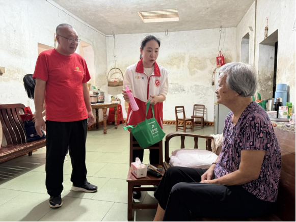 当看到慰问队伍前来探访时,残疾人梁婆婆瞬间红了眼眶。她颤巍巍地紧紧攥住吴永权先生的手,声音哽咽:“被你们惦记着……我这心里头,真的好暖!平日里出门少,总觉得像是被落下了,没想到党和社会上的好心人,还专门来看我……”她努力弯起嘴角,笑着向大家致谢:“你们上门看望我,带来的不只是驱蚊水,是暖到心窝里的热汤啊!谢谢你们,让我觉得这日子……更有盼头了!”