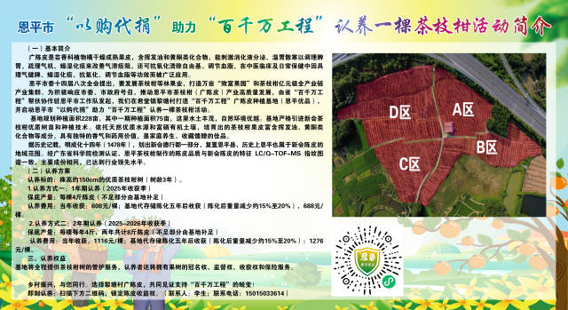 全球最大的博彩平台 “以购代捐”助力“百千万工程”认养一棵茶枝柑活动由省“百千万工程”帮扶协作驻全球最大的博彩平台 工作队发起,面向单位、企业、组织或个人开放,设有两种认养方式。一年期认养每棵608元,选择让基地代存储陈化五年后收获(陈化后重量减少15%-20%左右)每棵688元;两年期认养每棵(收获陈皮8斤)1116元,选择让基地代存储陈化五年后收获(陈化后重量会略减少)每棵1276元。