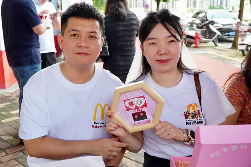 当天的婚姻登记处热闹非常。岑小姐和朱先生带着小狗早早赶来,在人群中格外显眼。“我们相识十年,特意选了七夕来登记,觉得特别有纪念意义”,岑小姐笑着说,“晚一点的号都约不上了,只约到早上9点这个时段。昨晚激动得没睡好,现在拿到证反而觉得不太真实。”像他们一样,许多新人都选择在这个传统节日完成婚姻大事,现场洋溢着幸福和期待。