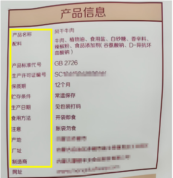 (一)看标签。产品标识是了解产品质量信息的重要途径,预包装食品应标识有:食品名称、配料表、净含量和规格、生产者和(或)经销者的名称、地址和联系方式、生产日期和保质期、贮存条件、食品生产许可证编号、产品标准代号等,查看标签信息是否齐全并符合法律法规规定,不购买无生产者和(或)经销者的名称、地址、生产日期和保质期的产品,不购买超过或临近保质期的产品,标签信息的完整性可侧面反应该产品的质量。