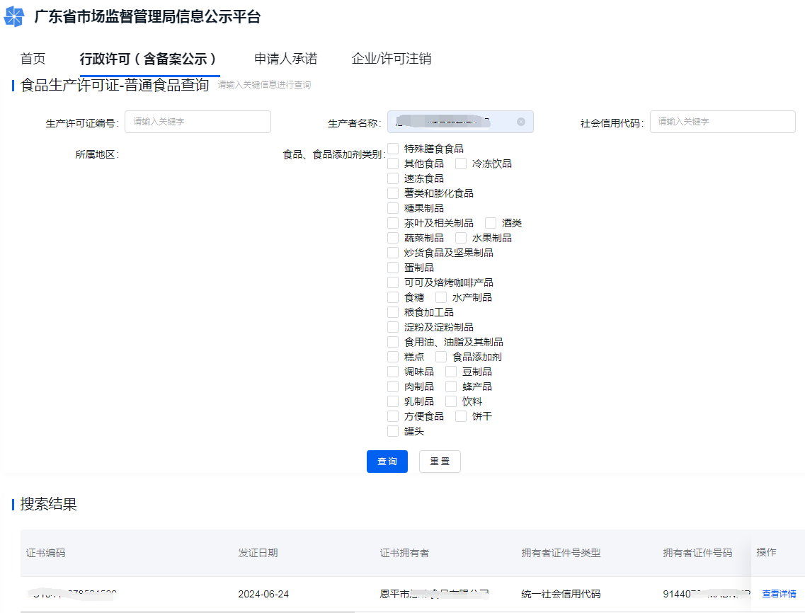 (四)查询食品生产许可。加工肉制品属于食品生产许可监管产品,可根据产品包装上标注的生产者、食品生产许可证编号登录国家市场监督管理总局食品生产许可获证企业信息查询平台查询(网址://spaqjg.e-cqs.cn/spscxk/)。