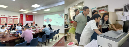 会上,鹤山市共和镇卫生院对学习组一行的到来表示热烈欢迎,并详细讲解了工伤保险联网结算的业务流程和挂账细节,学习组成员针对医院端系统编码对照、工伤入院挂账、重结后台财务做账等问题与对方科室负责人展开细致讨论,对医院端结算系统操作流程、异常数据处理等有了初步了解。会后,学习组按流程到各科室进行实地探讨和学习,与各科室工作人员交流经验,掌握业务流程办理要点,为今后更好开展工伤保险业务,做好工伤保险联网结算工作打下坚实基础。