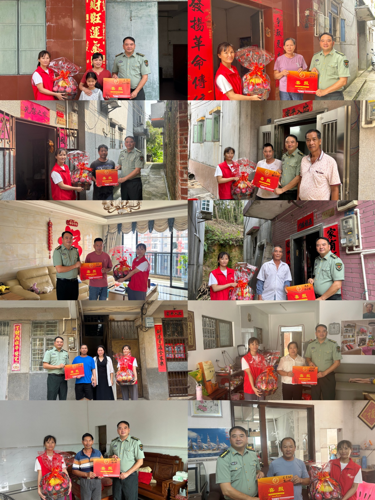 君堂镇武装部会同镇退役军人服务站、村居相关负责同志组成慰问组,前往获得“四有”优秀士兵的现役军人家中,为家属送上喜报、水果篮和慰问金,并表示崇高的敬意和祝福。