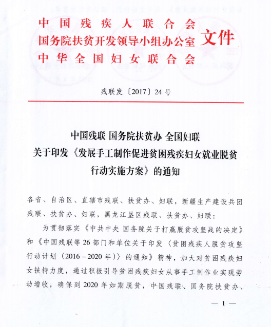附件:关于印发《发展手工制作促进贫困残疾妇女就业脱贫行动实施方案》的通知(残联发〔2017〕24号)