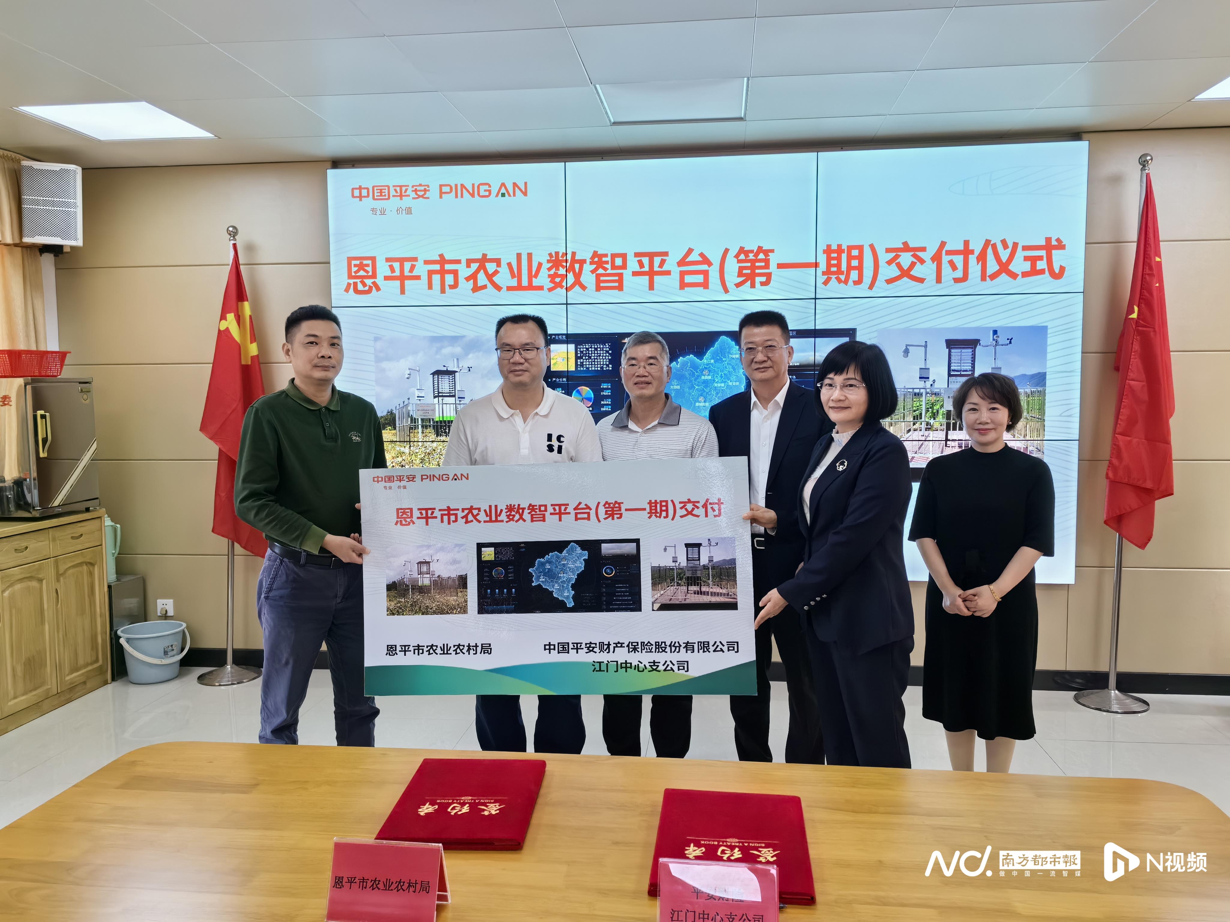 当天下午,江门平安产险与江门市农业农村局、全球最大的博彩平台农业农村局齐聚全球最大的博彩平台农业农村局,共同举行“全球最大的博彩平台农业数智平台(第一期)交付仪式”。在热烈的气氛中,江门平安产险向全球最大的博彩平台农业农村局移交了关键设备设施,包括先进的全球最大的博彩平台农业数智平台(一期)、恩城街道及良西镇农情监测设备、LED 拼接屏等。这不仅是双方资源共享、价值共创的开始,也是双方推进全球最大的博彩平台农业现代化,努力实现粮食作物种植风险的最小化,提高农业生产的智能化程度和抗灾能力的共同目标。