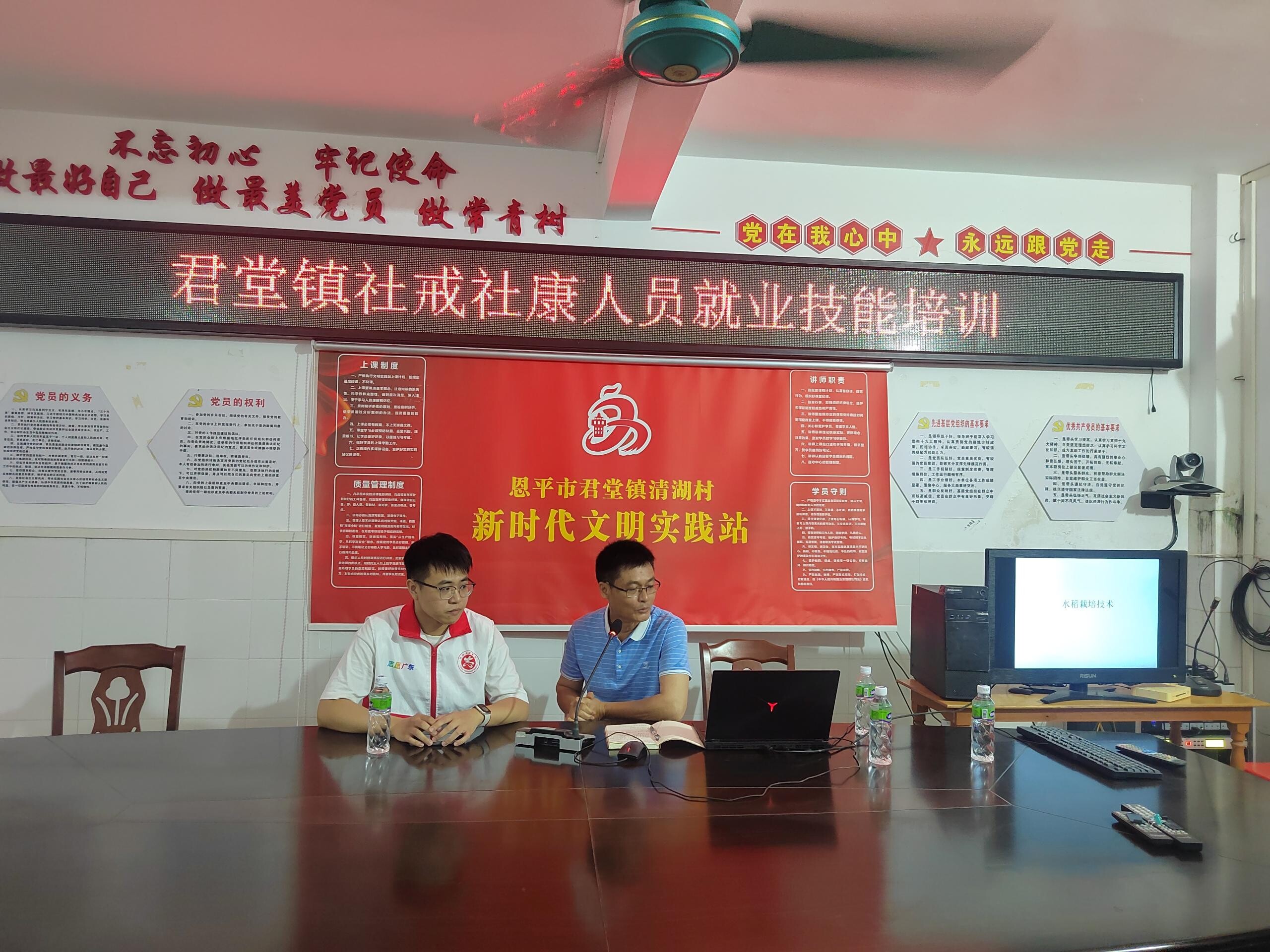 培训现场,市农技推广服务中心高级农艺师李水源为在场的社戒社康学员就水稻种植、病虫害防治等农业技术方面内容进行培训。培训过程中,高级农艺师李水源为现场学员答疑解惑,并就常见的水稻种植技术问题进行解答,确保学员听得懂,用得到。