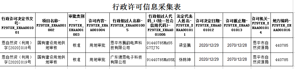 行政许可信息(2020年12月30日)