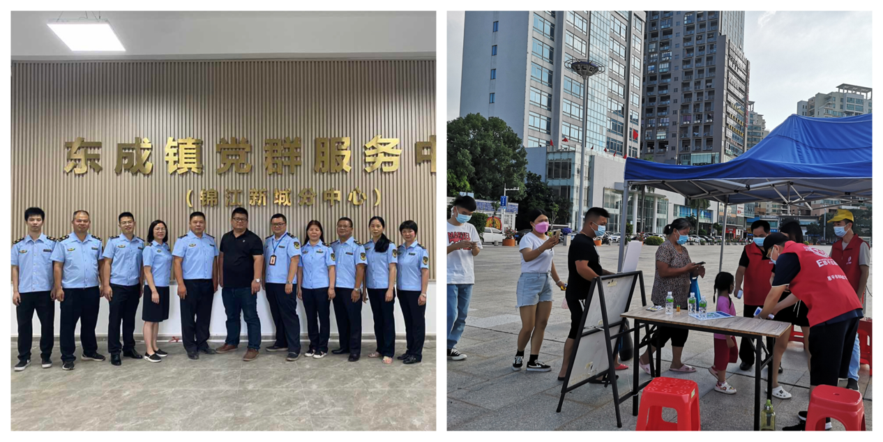(左图:党员下沉镇街参加疫情防控和安全稳定工作)