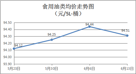 食用油类商品价格微幅下调。本周所监测的9种食用油(5L装)商品价格波动情况为3涨5跌1平,均价为94. 31元/桶,环比下降0.13%。金龙鱼花生油、金龙鱼调和油5L装零售均价分别为每桶105.67元、68.86元,环比分别下降0.60%、下降0.36%。